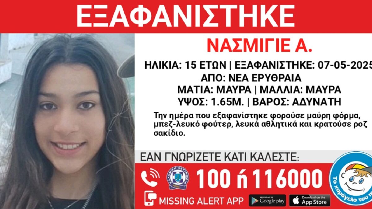 Εξαφανίστηκε μια 15χρονη από τη Νέα Ερυθραία