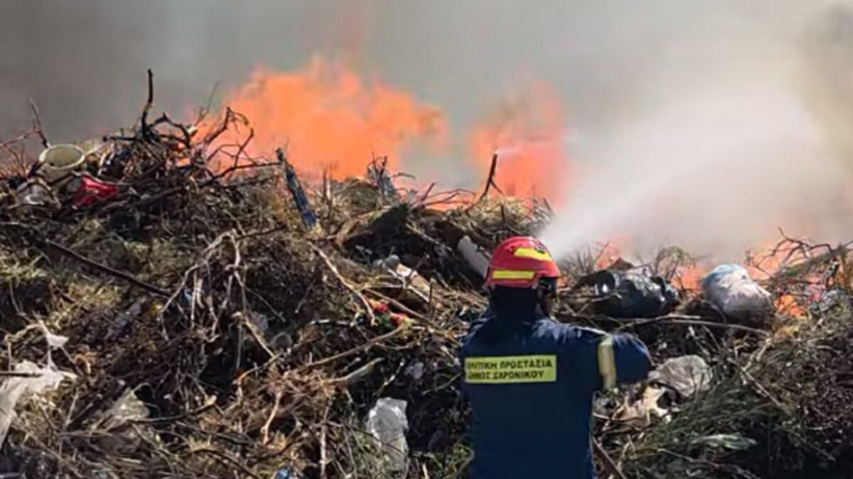 Η περιοχή πνιγεί από μαύρους καπνούς ενώ καίγονται σκουπίδια, κλαδιά και ξερά χόρτα
