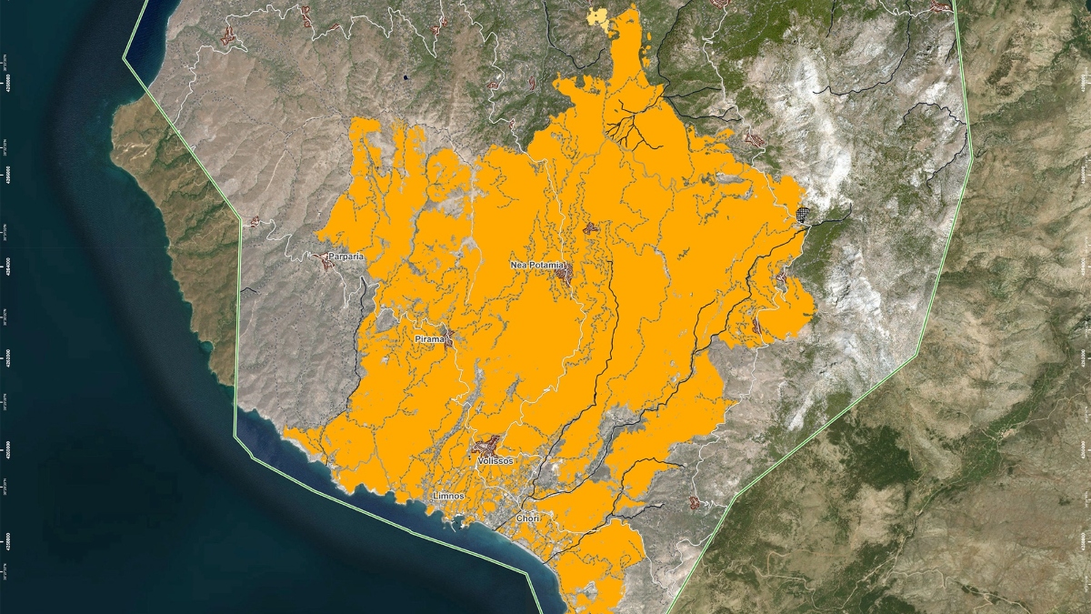 Για την εκτίμηση των καμένων εκτάσεων αναμένεται η συλλογή και επεξεργασία δορυφορικών δεδομένων υψηλής ανάλυσης, μέσω της οποίας θα αποτυπωθεί με ακρίβεια η έκταση των περιοχών που έχουν καεί και η τυχόν παρουσία άκαυτων νησίδων που δεν μπορούν να εκτιμηθούν με τα θερμά σημεία.