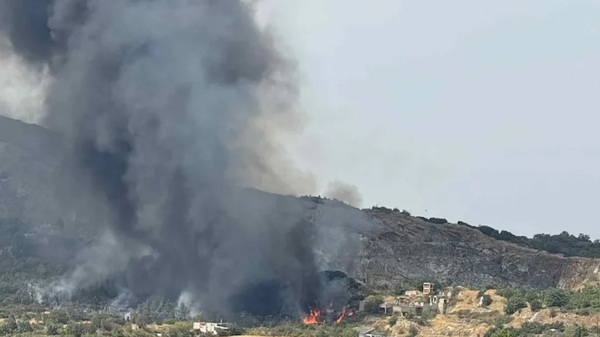 Η φωτιά καίει κοντά σε σπίτια και η πυροσβεστική κάνει τεράστια προσπάθεια για τον περιορισμό της.