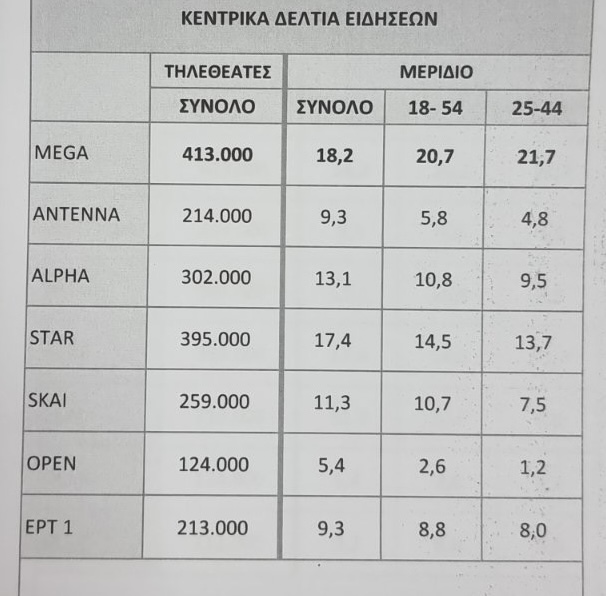 Η αναλυτική τηλεθέαση των δελτίων της Παρασκευής (13/6)