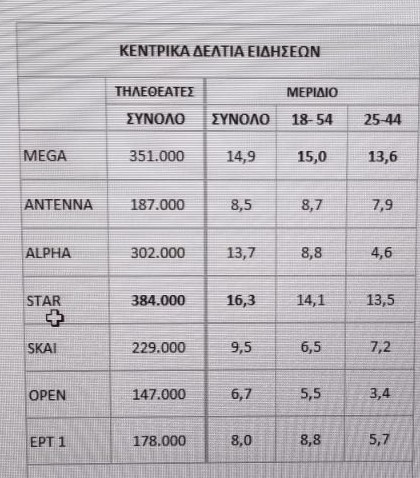 Η αναλυτική τηλεθέαση των δελτίων της Τρίτης (10/6) 11/06/2025 , 12:52 μμ Δείτε αναλυτικά τη τηλεθέαση των κεντρικών δελτίων ειδήσεων της Τρίτης (10.6)