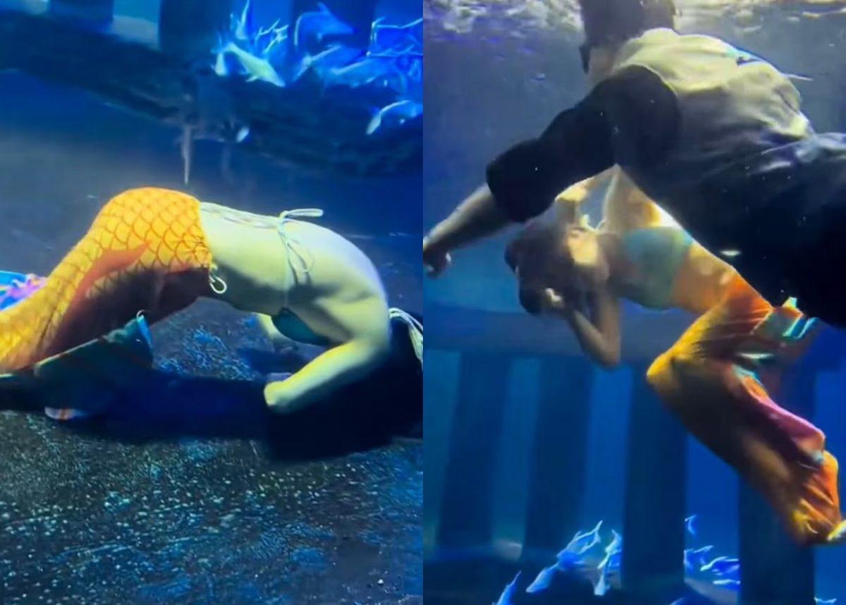 Σκηνές πανικού εκτυλίχθηκαν σε θαλάσσιο πάρκο στην Κίνα, όταν γοργόνα λιποθύμησε μέσα στο νερό, μπροστά στα μάτια των επισκεπτών.