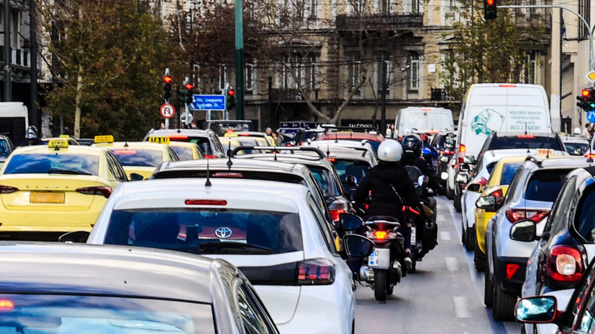 Στη Λεωφόρο Αθηνών η κίνηση είναι στο κόκκινο και στα δύο ρεύματα σε διαφορετικά σημεία.
