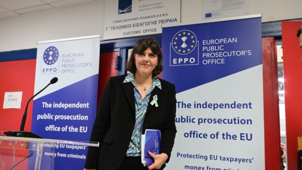 Συνέντευξη Τύπου παραχώρησε η Ευρωπαία Εισαγγελέας, Λάουρα Κοβέσι, από το κτίριο του γ’ Τελωνείου Πειραιά στο Πέραμα. Πρόκειται για συμβολική επιλογή τοποθεσίας λόγω της υπόθεσης διαφθοράς των τελωνειακών που αποκάλυψε η Ευρωπαϊκή Εισαγγελία.