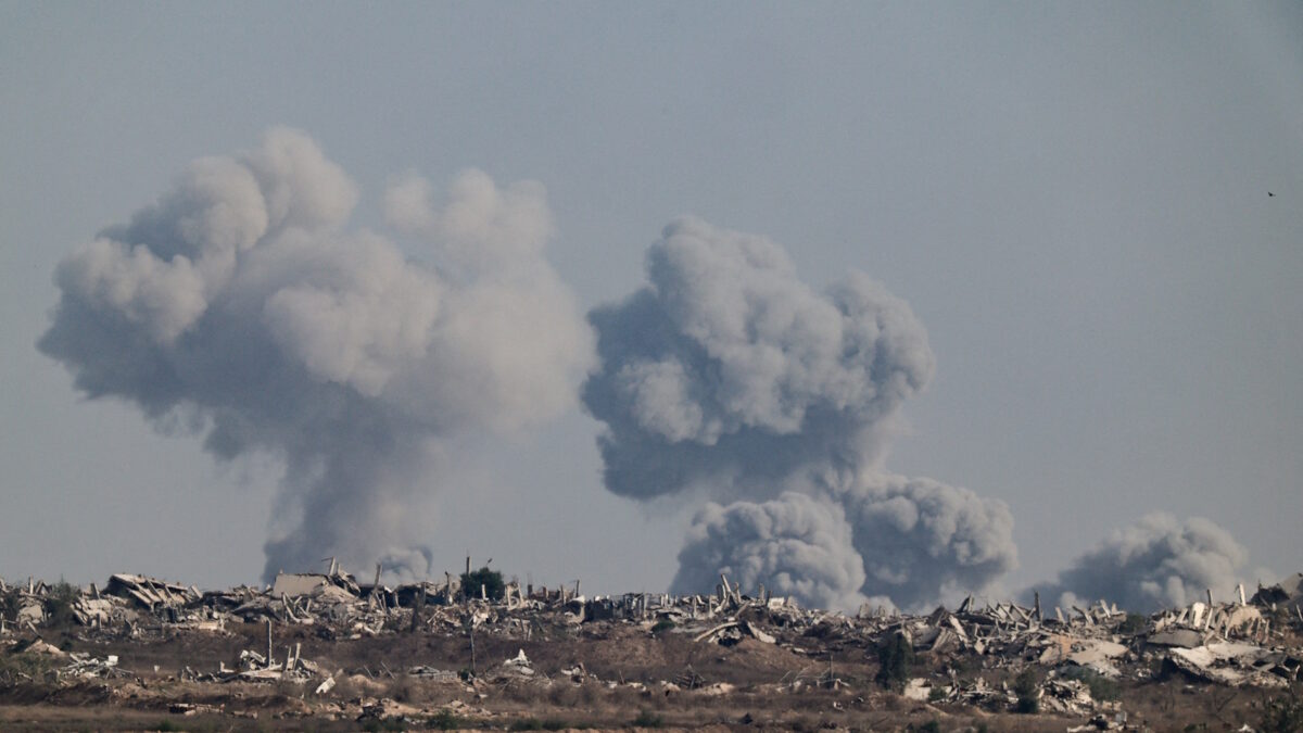 Smoke rises from Gaza after an explosion as seen from the Israeli side of the border, September 28, 2025. REUTERS/Amir Cohen