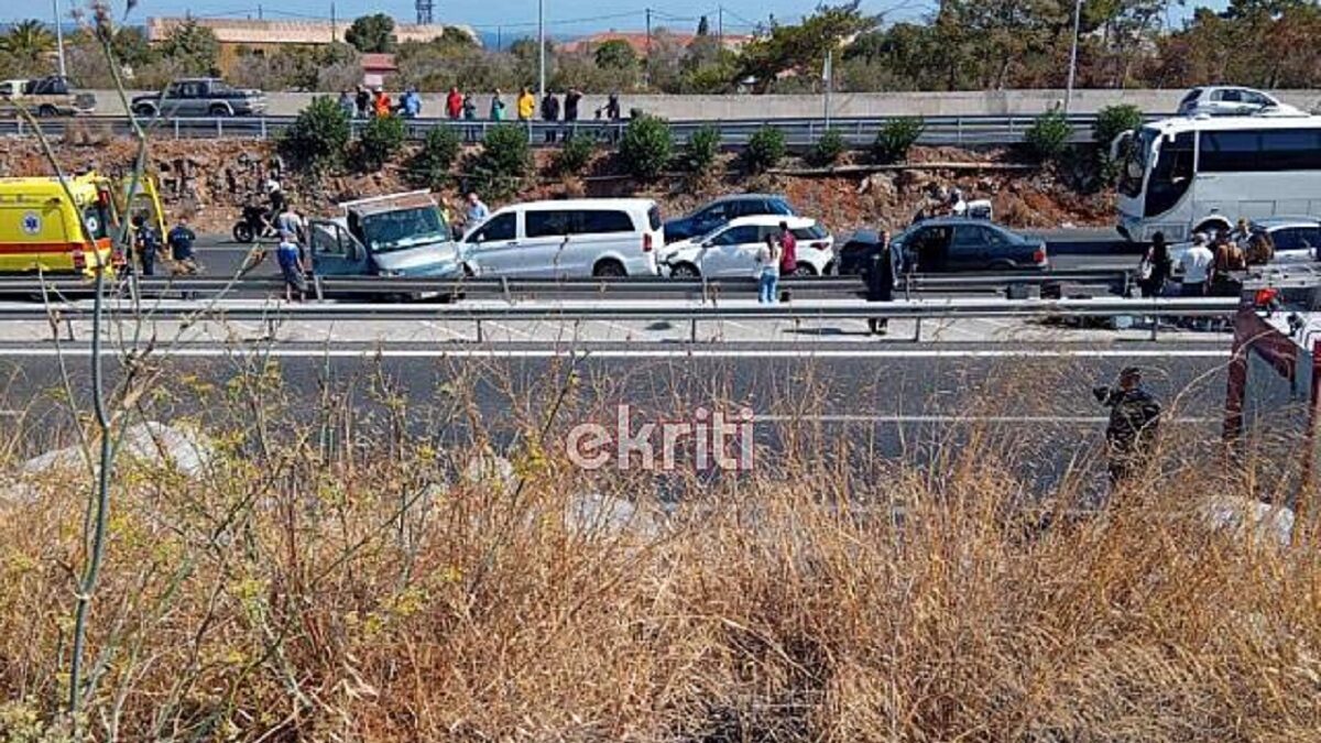 Από τη σύγκρουση των τεσσάρων αυτοκινήτων που ενεπλάκησαν στην καραμπόλα, τραυματίστηκε ελαφριά ένας άνθρωπος, ο οποίος μεταφέρθηκε με το ΕΚΑΒ στο νοσοκομείο Ηρακλείου.