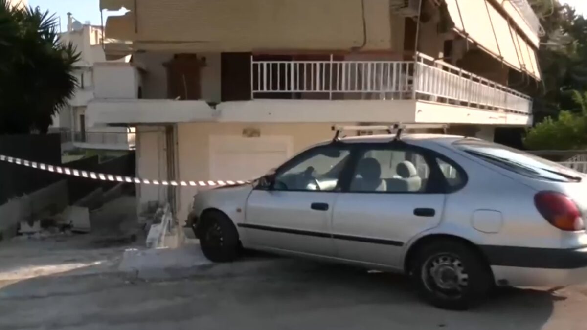 Προκλήθηκαν υλικές ζημιές τόσο στο όχημα όσο και στην πολυκατοικία.