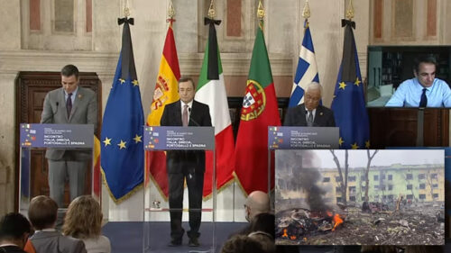 Ο πρωθυπουργός εξέφρασε, παράλληλα, τον αποτροπιασμό του για τις εικόνες που φτάνουν από την Ουκρανία και ιδιαίτερα τη Μαριούπολη, μια περιοχή με έντονο ελληνικό στοιχείο, λέγοντας: «Θέλω, επίσης, να εκφράσω τον αποτροπιασμό μου για όσα συμβαίνουν στην Ουκρανία και δη στην Μαριούπολη, που έχει καταστεί σύμβολο αντίστασης. Γνωρίζετε το έντονο ενδιαφέρον μας, καθώς εκεί διαβιούν περισσότεροι από 100.000 Ουκρανοί πολίτες ελληνικής καταγωγής. Η Ελληνική κυβέρνηση θα αναλάβει μετά το τέλος των εχθροπραξιών την ανακατασκευή του μαιευτηρίου στη Μαριούπολη, που βομβαρδίστηκε, ως ελάχιστη ένδειξη στήριξης».