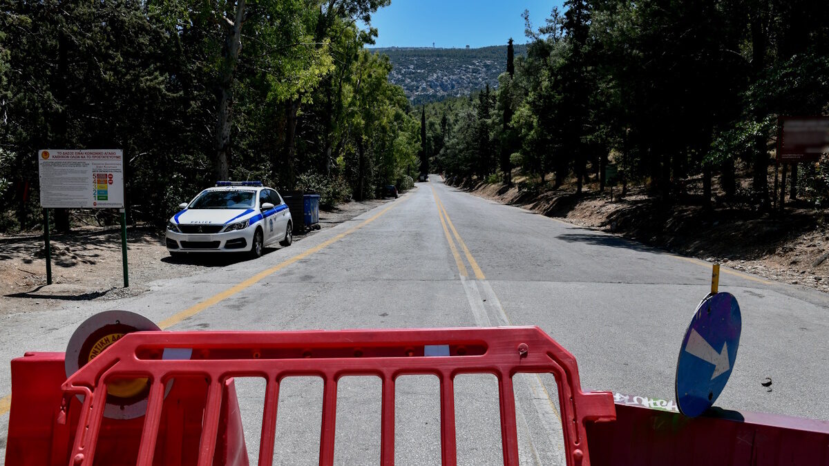 Πολύ υψηλός ο κίνδυνος για πυρκαγιά και σήμερα, κατηγορίας 4 στον χάρτη της Πολιτικής Προστασίας, λόγω τω ισχυρών ανέμων. Απαγόρευση κυκλοφορίας και μέτρα σε όλους τους Εθνικούς δρυμούς και πάρκα. Κλειστός ο Υμηττός από το φυλάκιο της Καισαριανής, Δευτέρα 18 Ιουλίου 2022 (ΤΑΤΙΑΝΑ ΜΠΟΛΑΡΗ/ EUROKINISSI)