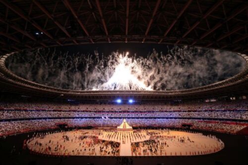 Tokyo 2020 Olympics - The Tokyo 2020 Olympics Opening Ceremony - Olympic Stadium, Tokyo, Japan - July 23, 2021. Fireworks explode during the opening ceremony Pool via REUTERS/Leon Neal *** Local Caption *** TOKYO, JAPAN - JULY 23: <>during the Opening Ceremony of the Tokyo 2020 Olympic Games at Olympic Stadium on July 23, 2021 in Tokyo, Japan. (Photo by Leon Neal/Getty Images)