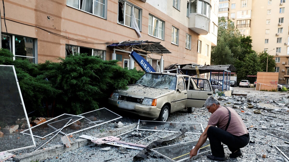 A person inspects the site where a Russian drone struck an apartment building, amid Russia's attack on Ukraine, in Kyiv, Ukraine June 6, 2025. REUTERS/Thomas Peter