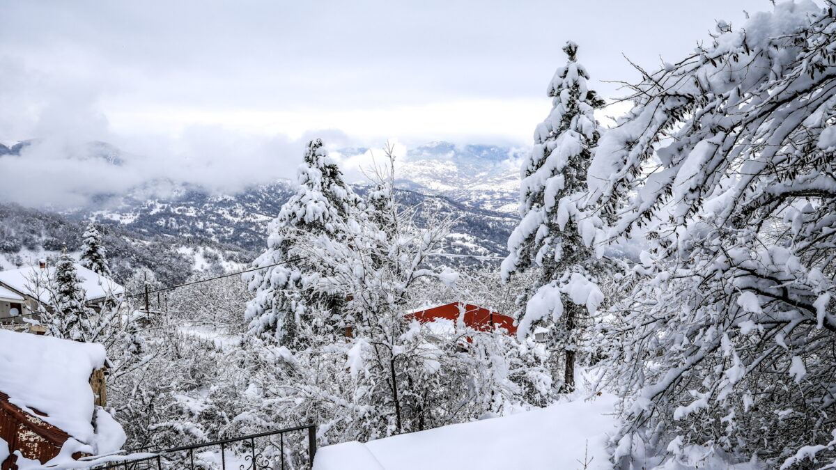Αμπελοχώρι, ορεινός οικισμός του δήμου Μετεώρων στην Κεντροδυτική Πίνδο, στα 850 μέτρα υψόμετρο με 7 μόνιμους κατοίκους το χειμώνα. Πέμπτη 16 Ιανουαρίου 2025 (EUROKINISSI)