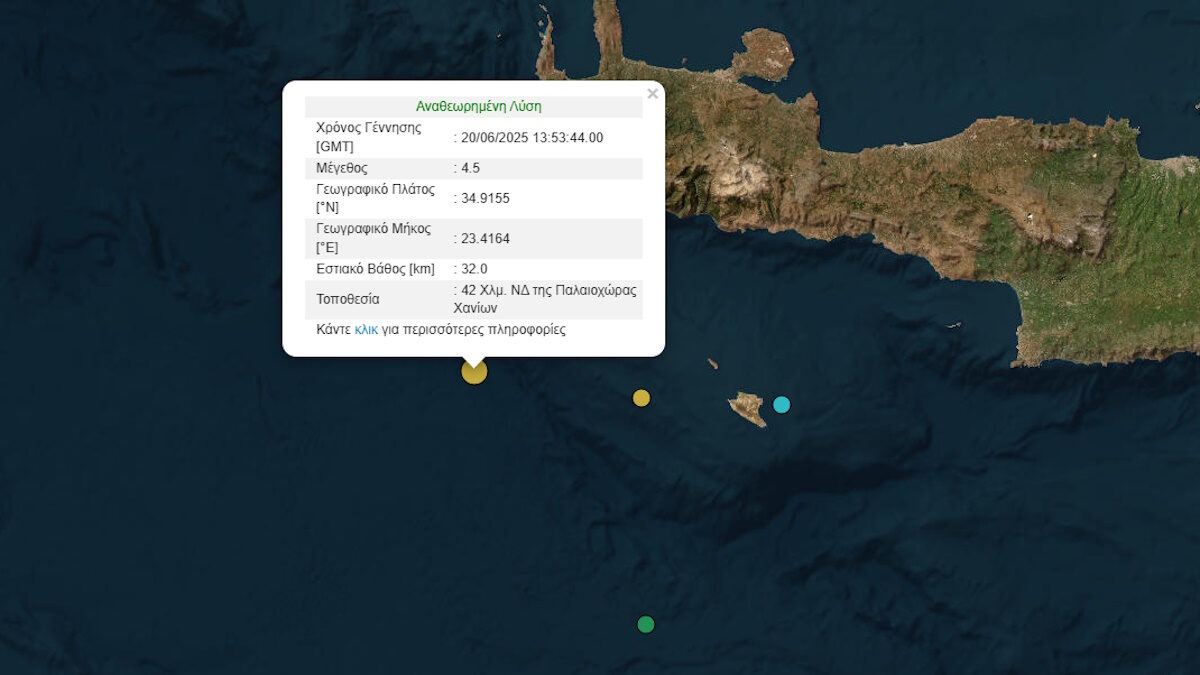 Ο σεισμός έγινε 42 χιλιόμετρα νοτιοδυτικά της Παλαιοχώρας στα Χανιά