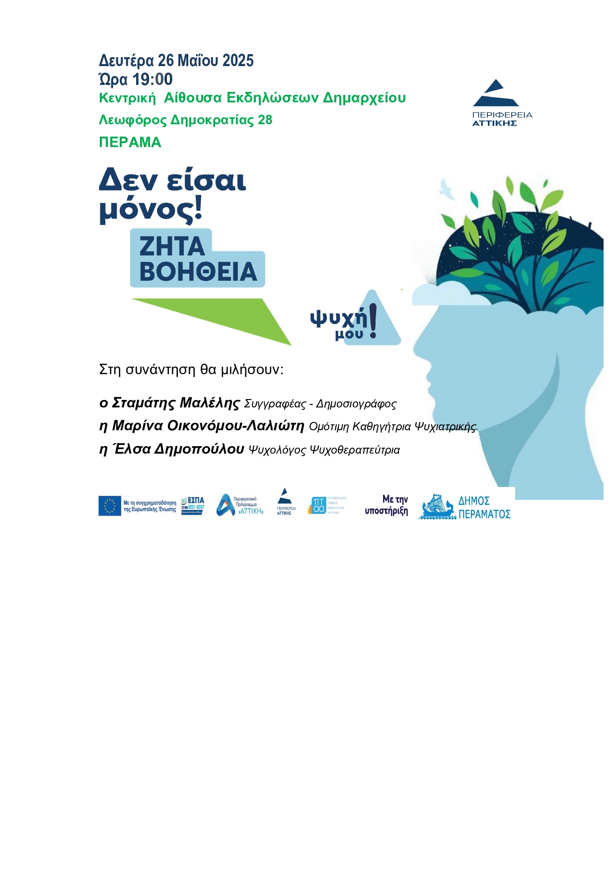 Η Περιφέρεια Αττικής και ο Δήμος Περάματος , σας προσκαλούν στη “συνάντηση κοινωνικής ευαισθητοποίησης” με θέμα: