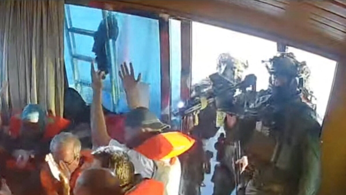 A screengrab from a live stream video shows Israeli navy forces aboard the Gaza-bound vessel Florida, part of the Global Sumud Flotilla, which flotilla organisers report has been intercepted, October 2, 2025. Global Sumud Flotilla/Handout via REUTERS THIS IMAGE HAS BEEN SUPPLIED BY A THIRD PARTY. MANDATORY CREDIT. NO RESALES. NO ARCHIVES. TPX IMAGES OF THE DAY