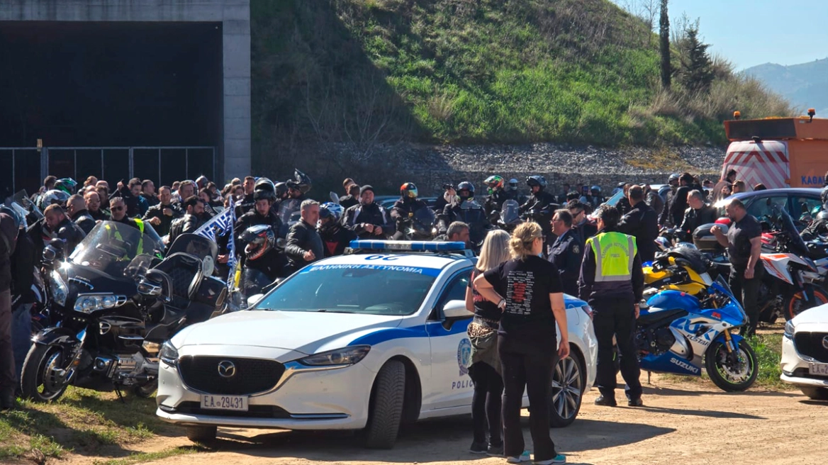 Στο σημείο της τραγωδίας των Τεμπών βρέθηκαν σήμερα δεκάδες μοτοσικλετιστές, που πραγματοποίησαν μηχανοκίνητη πορεία από τα Μάλγαρα.