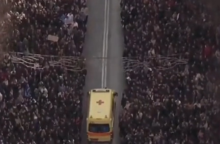 Τέμπη: Το viral βίντεο με διαδηλωτές στη Θεσσαλονίκη να ανοίγουν δρόμο για να περάσει ασθενοφόρο