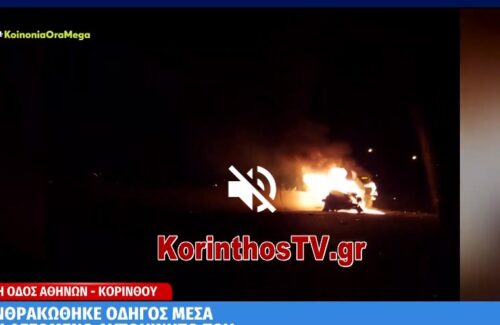 Η τραγωδία έλαβε χώρα νωρίς το βράδυ της Κυριακής στο 67,3 χιλιόμετρο της Εθνικής οδού Αθηνών – Κορίνθου στο ρεύμα προς Κόρινθο. Η φωτιά στο αυτοκίνητο ξέσπασε μετά από σύγκρουση, ενώ στο σημείο έσπευσε η Πυροσβεστική, όμως διαπιστώθηκε ότι ο άνδρας είχε απανθρακωθεί. Στο σημείο επιχείρησαν 12 πυροσβέστες με 4 οχήματα.