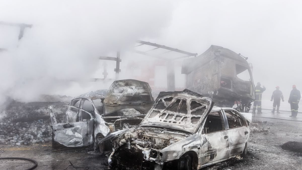 Το φορτηγό συγκρούστηκε με δύο αυτοκίνητα κάτω από αυτές τις εξαιρετικά επικίνδυνες καιρικές συνθήκες πολύ πυκνής ομίχλης και στη συνέχεια έπεσε πάνω στο κουβούκλιο των διοδίων Πολυμύλου, διαλύοντάς το.
